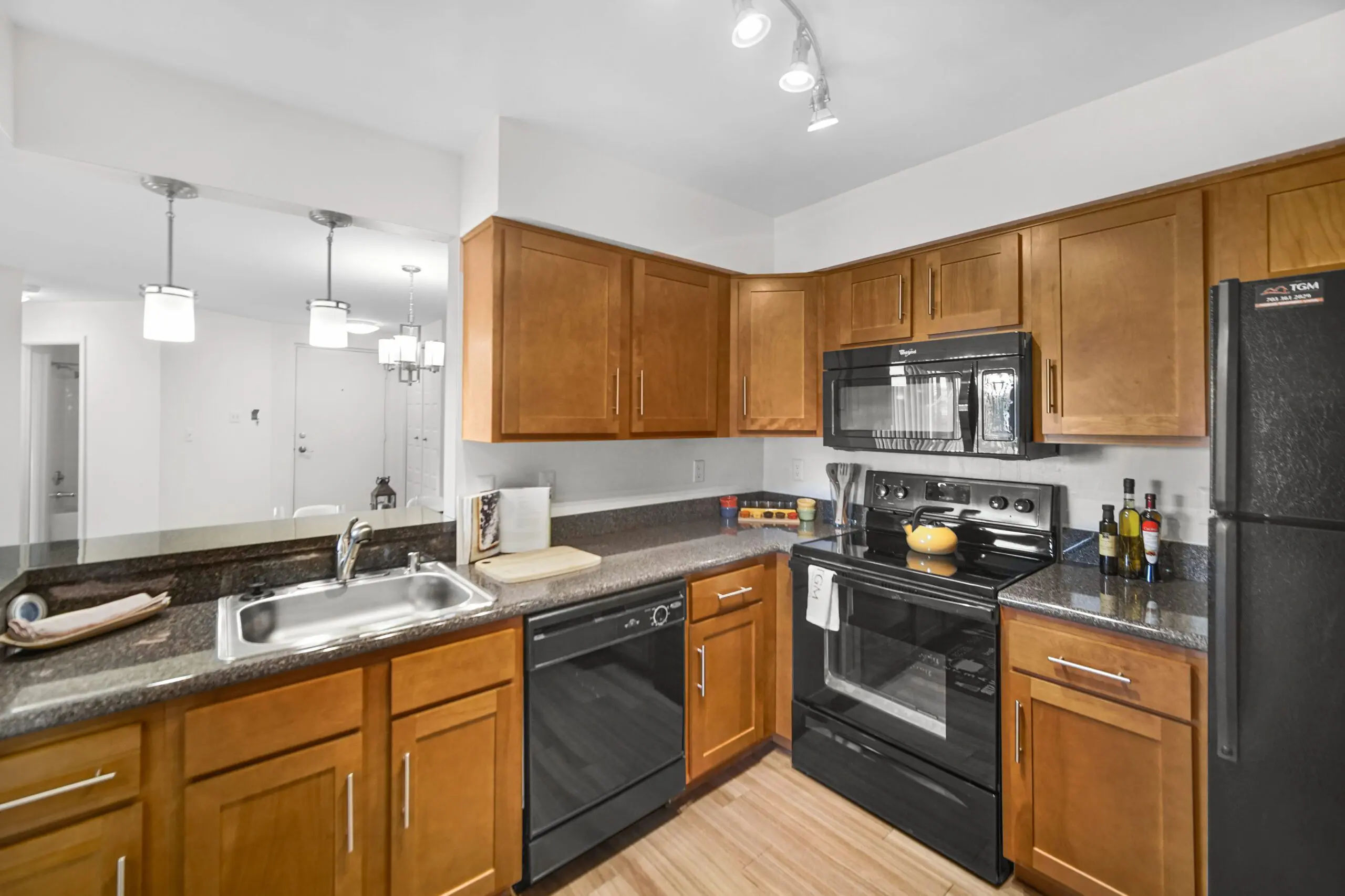 TGM Sudley Crossing is proud to offer spacious one and two bedroom apartment homes. All units feature fully equipped eat-in kitchens with granite-inspired countertops, Whirlpool appliances, and breakfast bars. Every apartment home is complete with washer and dryer, private patio or balcony, contemporary window treatments, and designer lighting fixtures.